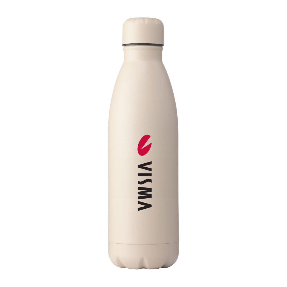 Double-walled, leak-proof water/thermos bottle made from recycled stainless steel. In a modern matte finish with matching screw cap.