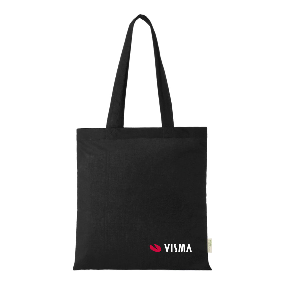 140 g/m² GOTS organic cotton tote bag 7L. Sustainable tote bag with 32 cm long handles.