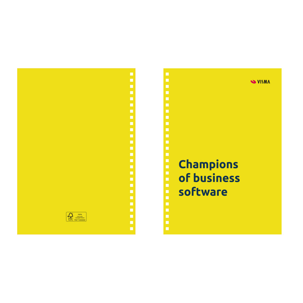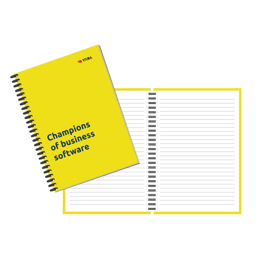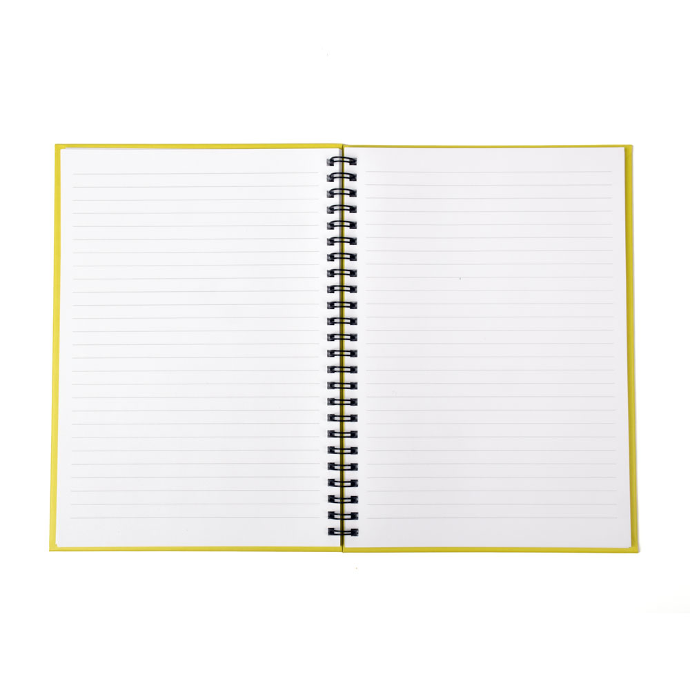 Hard cover wire-O notebook in format A5. 60 sheets inside with lines.